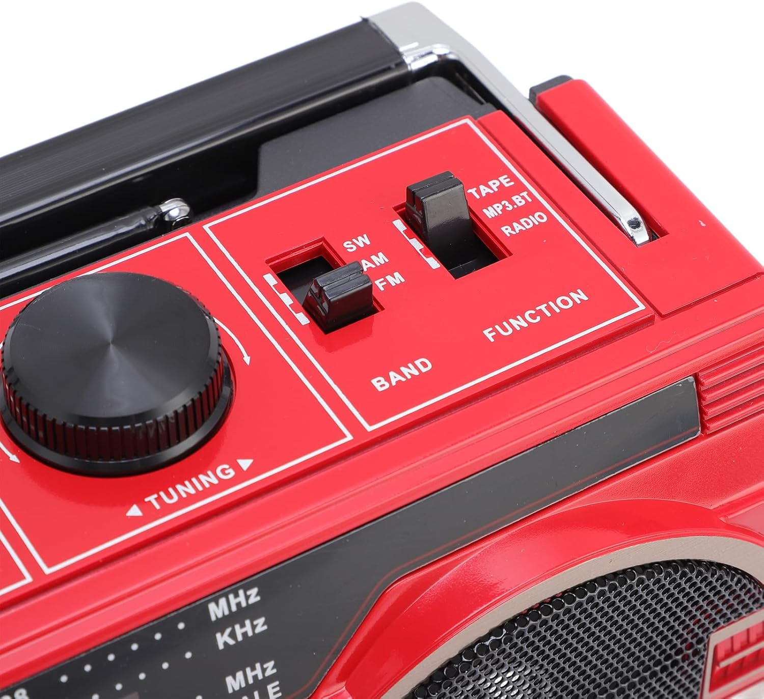 鮮やかなレッド・カラーが目を引く、オールドスクールな見た目がクールなカセット・プレイヤーです🟥