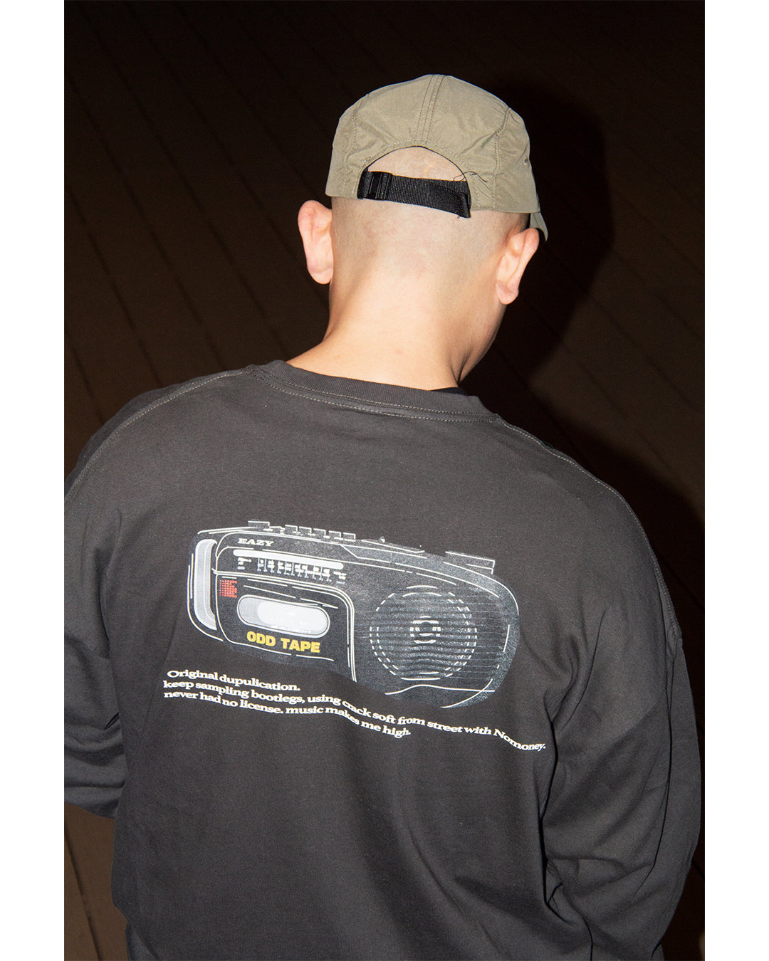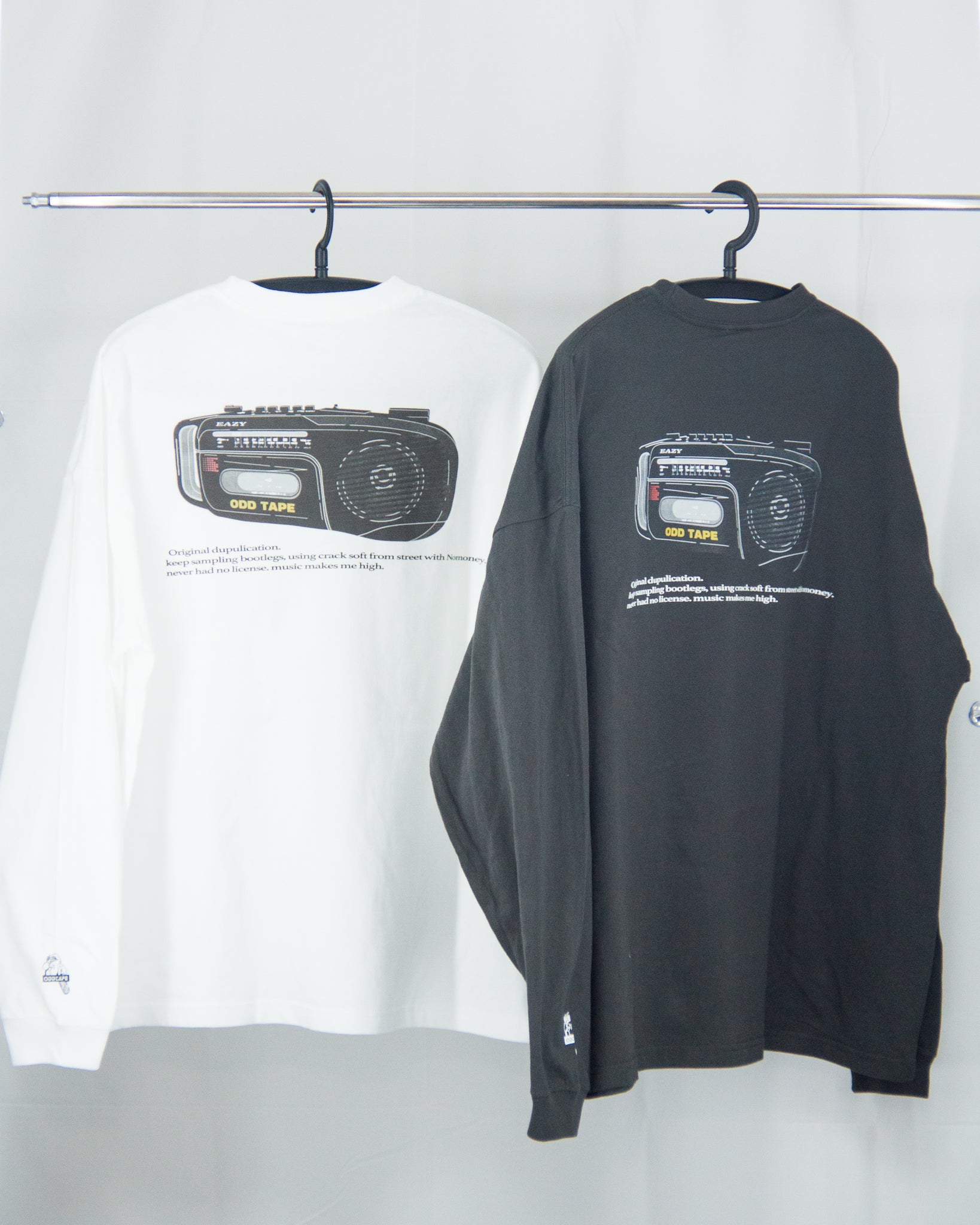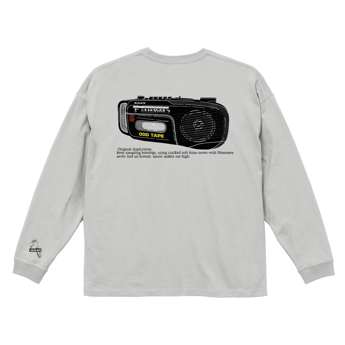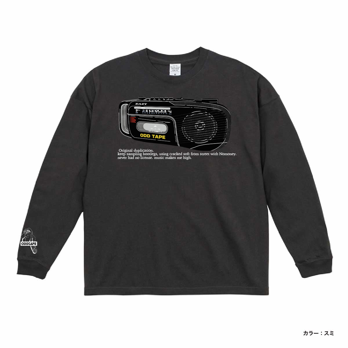 開催ごとにリリースされたゲストアーティストによるカセットは毎回全て完売となった、eazy 主催の幻のイベント” Side B Playlist” のフライヤーデザインに落とし込まれたヴィンテージカセットプレイヤーとストリートから発信されるサンプリングミュージックへのアティチュードがメッセージとして落とし込まれている象徴的なL/S Tシャツ。